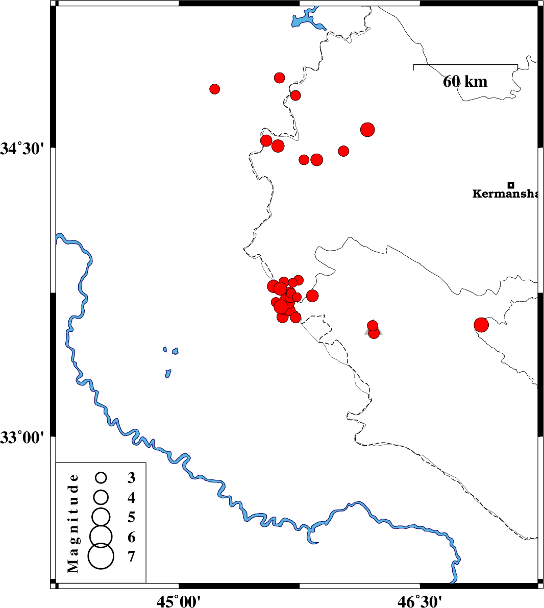 |  | 2018/01/28 | 04:07:08.0 | 07:37:08.0 | 33.77 | 45.63 | 14 | ML:3.6 | Kermanshah Province, 49 km South-West of Gilan-E-Gharb |  |