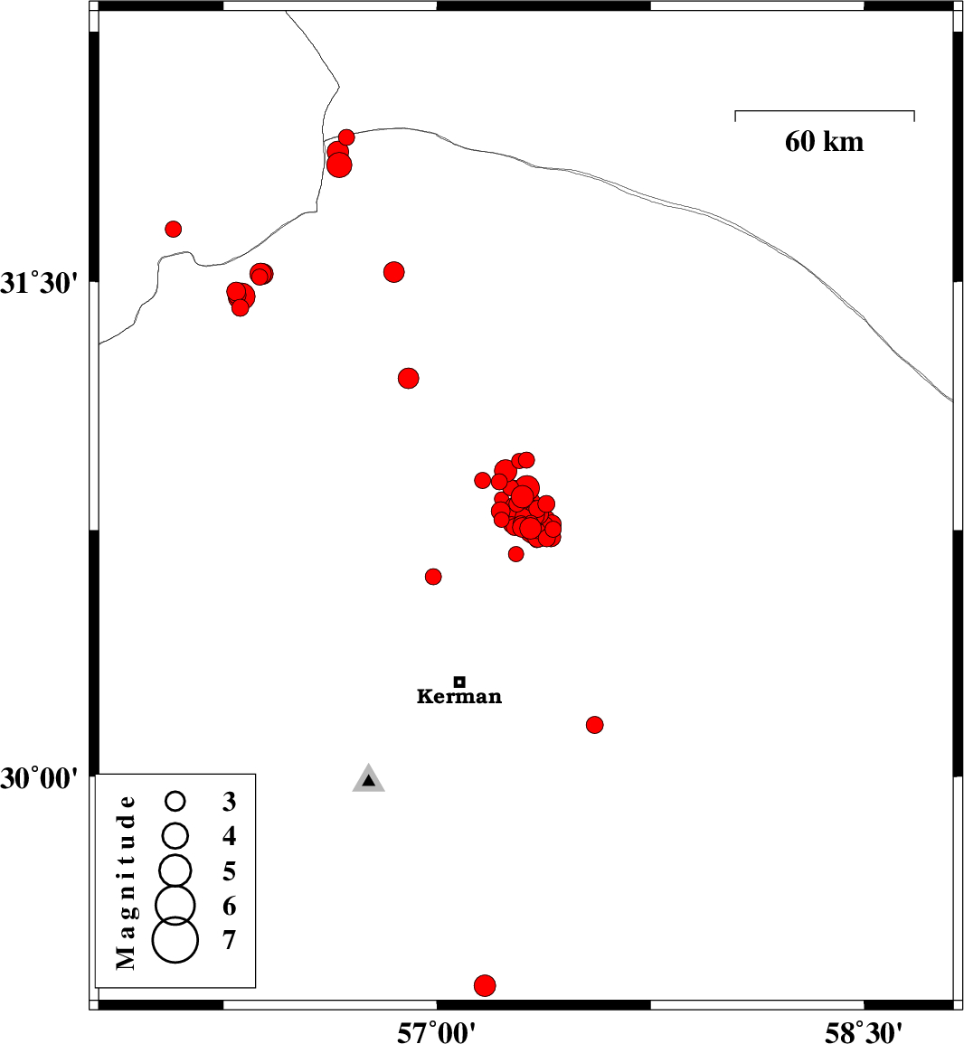 |  | 2018/01/21 | 00:30:01.7 | 04:00:01.7 | 30.752 | 57.33 | 14 | ML:3.5 | Kerman Province, 57 km North-East of Kerman |  |