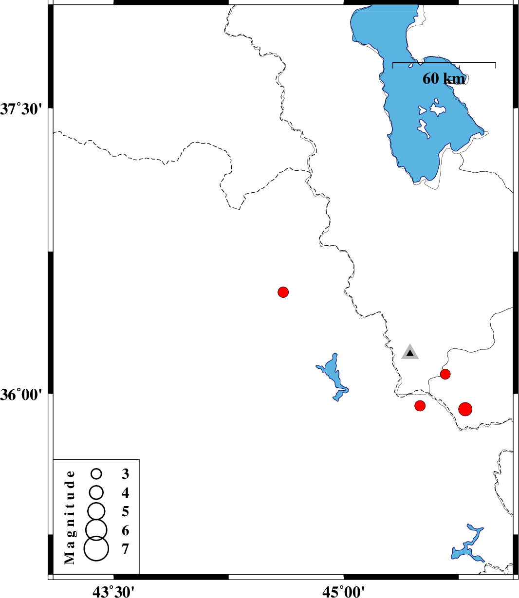 | 2018/02/03 | 21:44:54.3 | 01:14:54.3 | 36.536 | 44.605 | 14 | ML:3.1 | Iraq, 51 km South-West of Piranshahr | ||