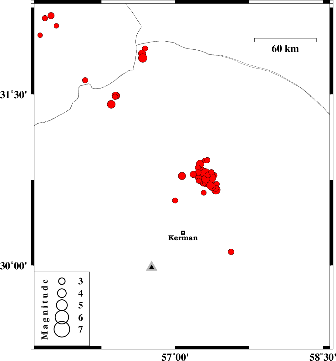 |  | 2018/01/21 | 00:30:01.7 | 04:00:01.7 | 30.752 | 57.33 | 14 | ML:3.5 | Kerman Province, 57 km North-East of Kerman |  |