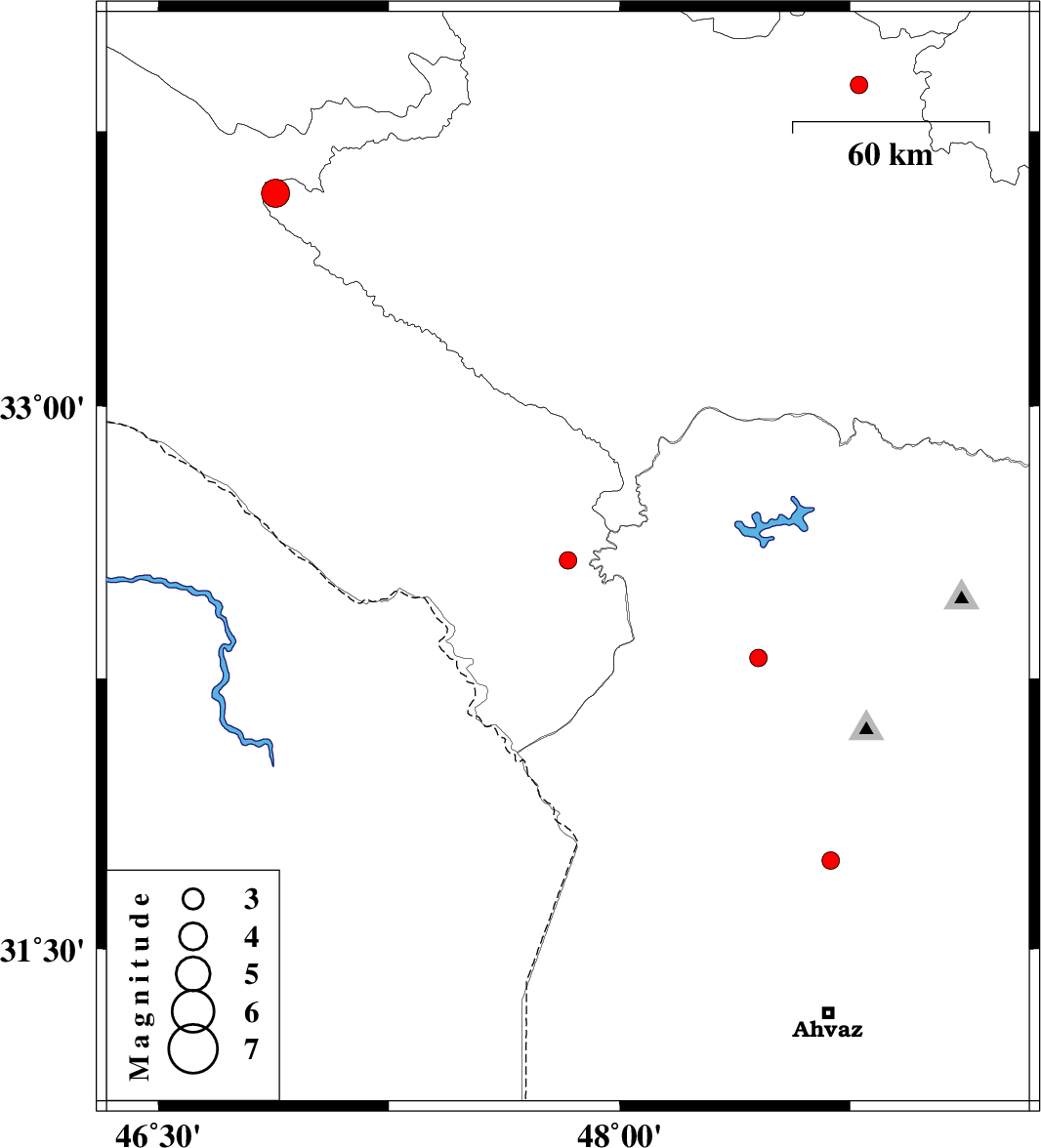 | 2018/01/21 | 03:07:55.9 | 06:37:55.9 | 31.746 | 48.687 | 15 | ML:2.6 | Khoozestan Province, 47 km North of Ahvaz |