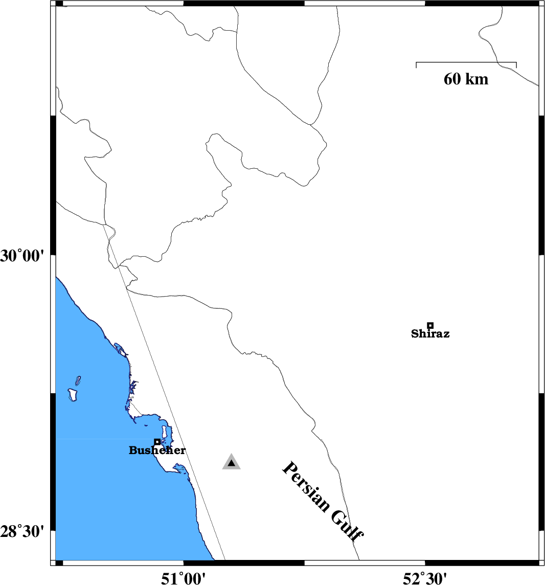 | 2018/02/15 | 01:38:36.2 | 05:08:36.2 | 29.268 | 51.226 | 14 | ML:2.3 | Bushehr Province, 2 km of Borazjan | ||