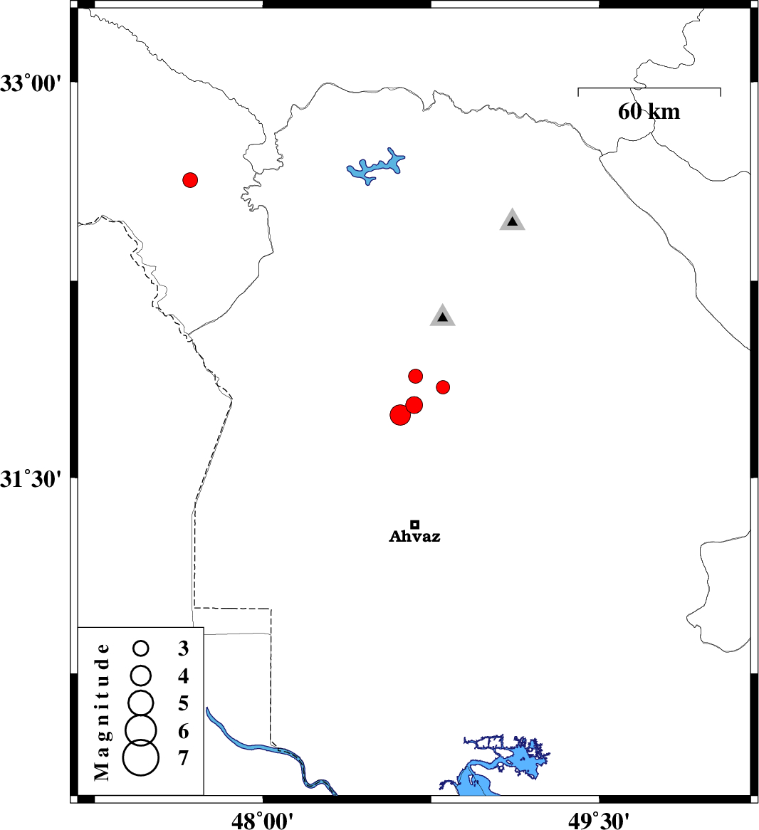 | 2018/02/16 | 20:15:39.2 | 23:45:39.2 | 31.888 | 48.681 | 15 | ML:2.8 | Khoozestan Province, 24 km South-West of Shushtar | ||