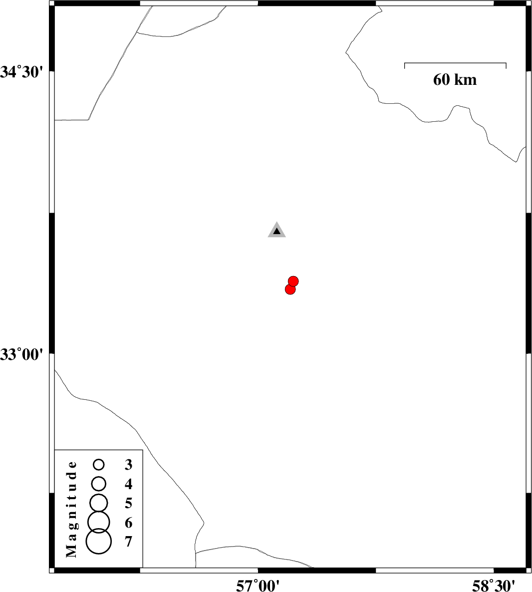 | 2018/03/11 | 01:01:19.2 | 04:31:19.2 | 33.386 | 57.224 | 8 | ML:3 | Yazd Province, 36 km South-East of Tabas | ||
