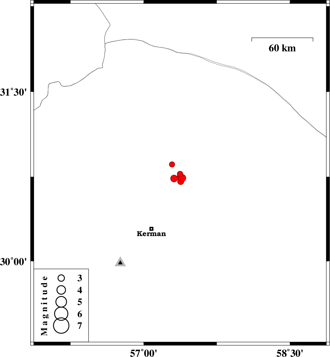| 2018/03/04 | 11:35:27.1 | 15:05:27.1 | 30.708 | 57.38 | 14 | ML:3 | Kerman Province, 55 km North-East of Kerman |
