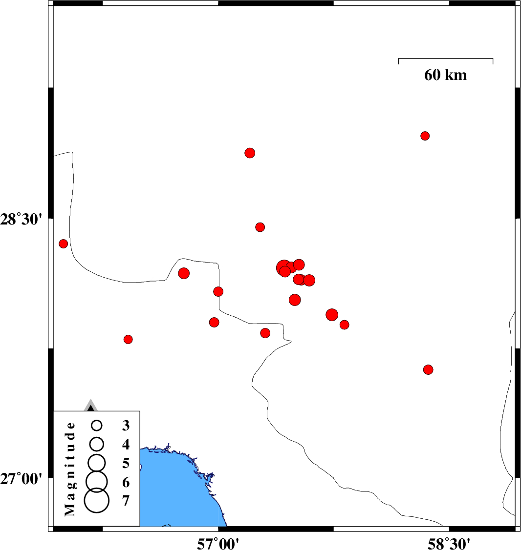 2018/03/06 00:04:47.5 03:34:47.5 27.62858.36415 ML:2.8 Kerman Province, 75 km South-East of Kahnuj