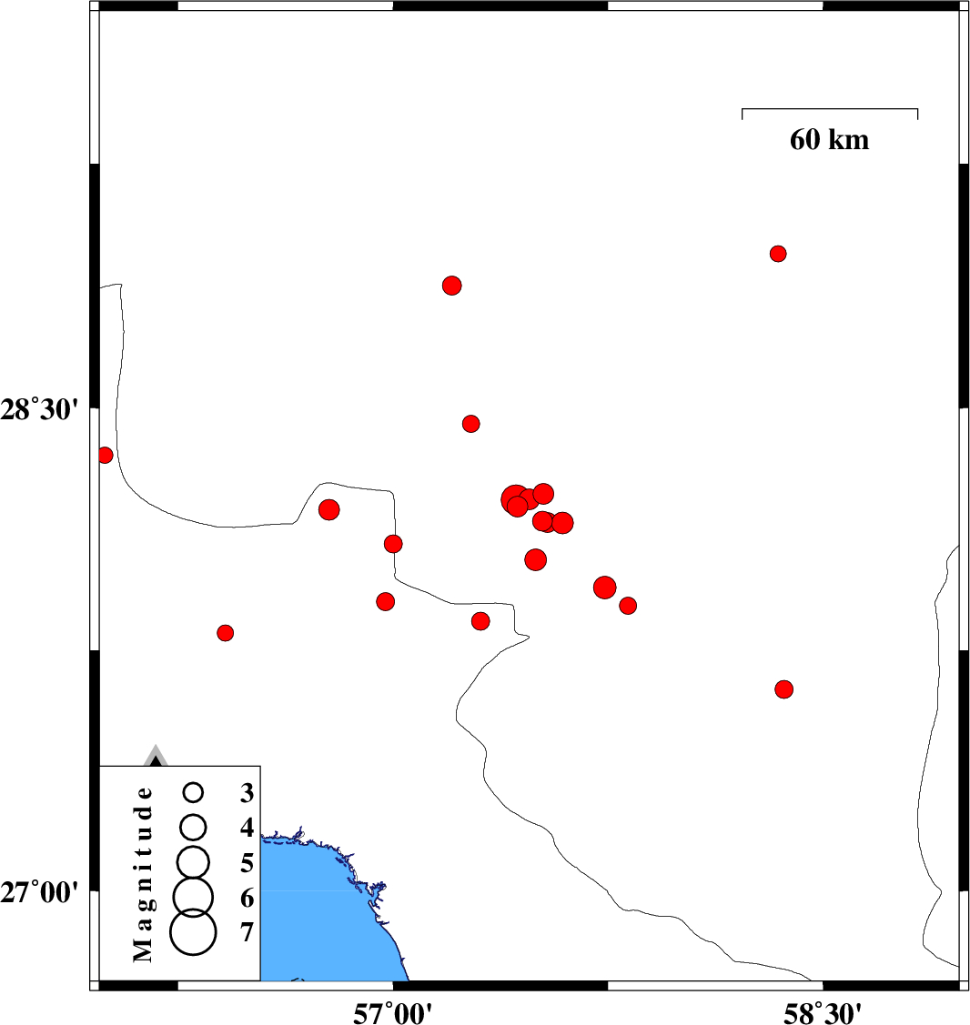 2018/03/06 00:04:47.5 03:34:47.5 27.62858.36415 ML:2.8 Kerman Province, 75 km South-East of Kahnuj