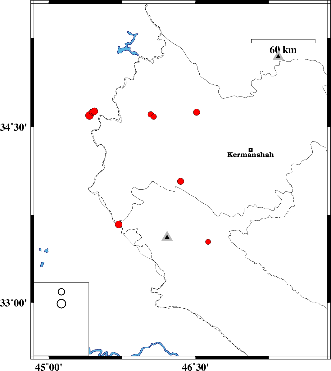 | 2018/03/16 | 16:01:25.8 | 19:31:25.8 | 34.586 | 46.073 | 14 | ML:2.5 | Kermanshah Province, 22 km North-East of Sar-e pol-e zahab | ||