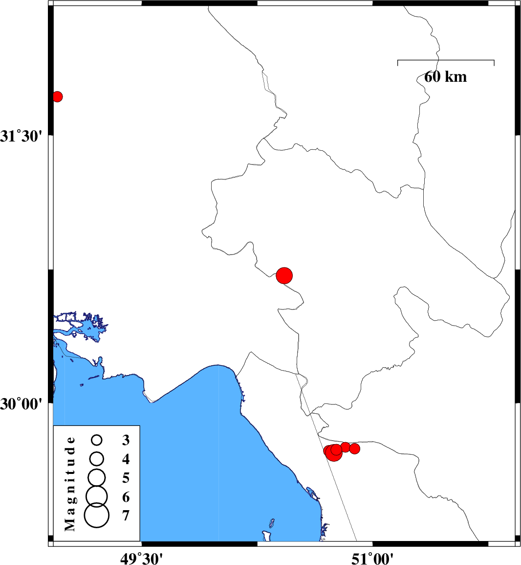| 2018/03/19 | 06:09:52.0 | 09:39:52.0 | 29.736 | 50.764 | 6 | ML:3.2 | Bushehr Province, 30 km North-East of Bandar-e genaveh | ||