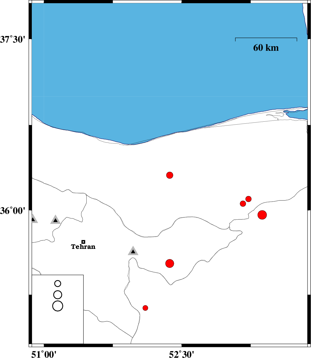 | 2018/03/20 | 02:40:22.5 | 06:10:22.5 | 35.959 | 53.376 | 15 | ML:4.4 | Semnan Province, 44 km North of Semnan | ||