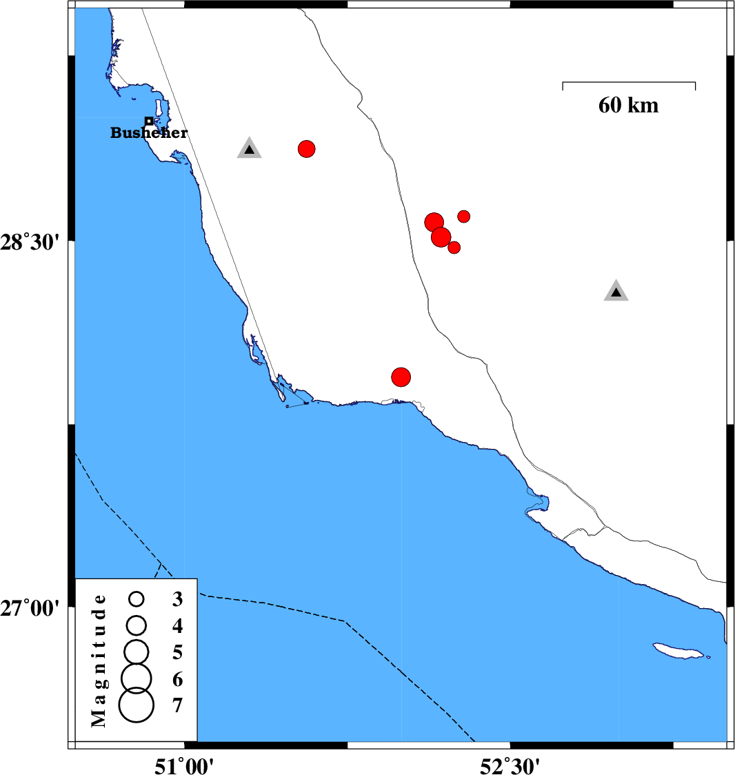 | 2018/04/09 | 03:23:12.7 | 07:53:12.7 | 27.943 | 51.996 | 10 | ML:3.9 | Bushehr Province, 14 km North of Bandar-e kangan | ||