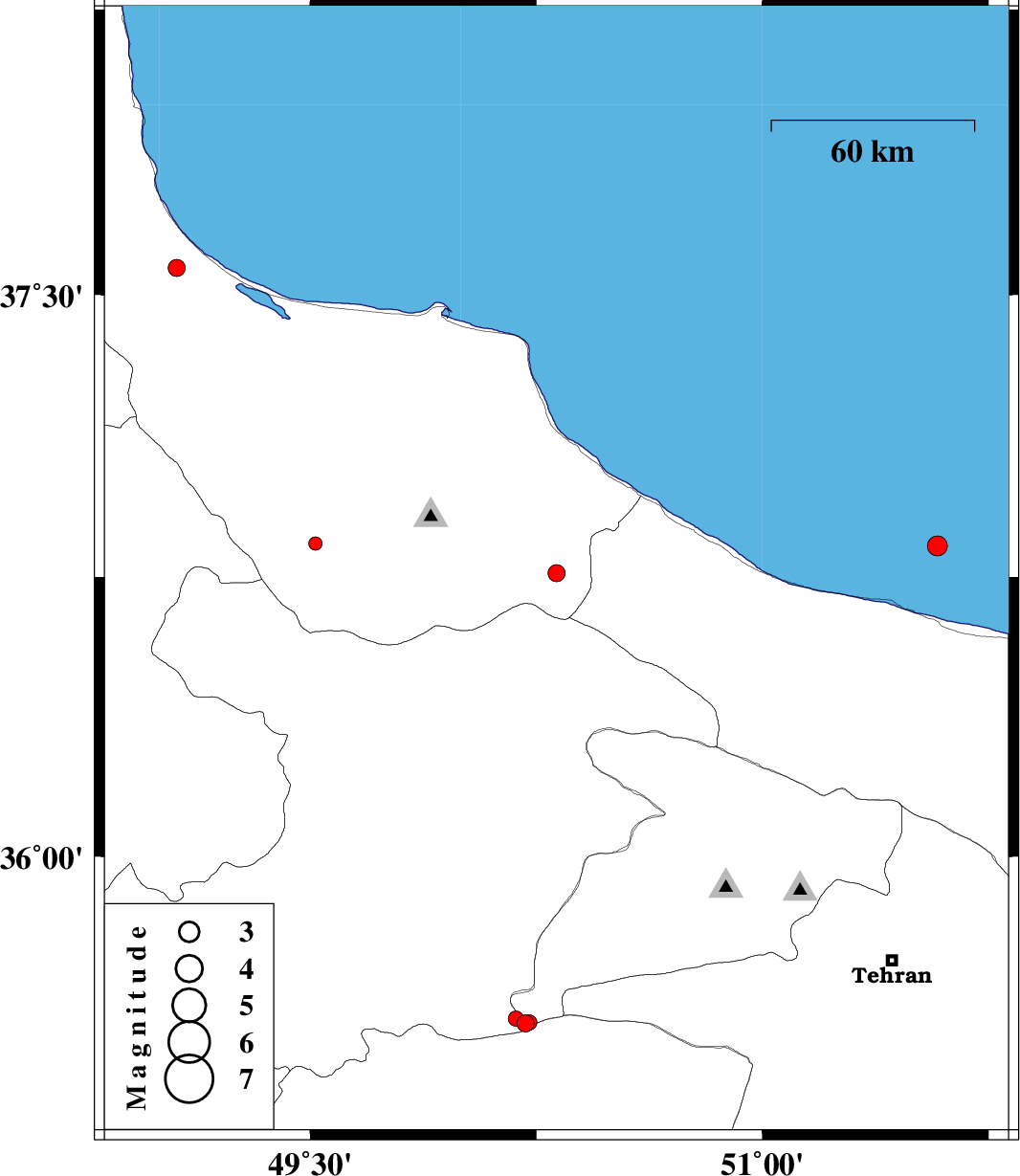 | 2018/04/06 | 17:36:56.6 | 22:06:56.6 | 36.833 | 51.581 | 6 | ML:2.9 | Caspian Sea, 22 km North of Nowshahr | ||