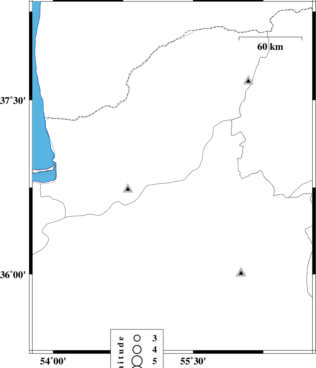 | 2018/04/10 | 19:38:52.7 | 00:08:52.7 | 36.836 | 55.277 | 14 | ML:3.5 | Golestan Province, 23 km South-East of Ramian |