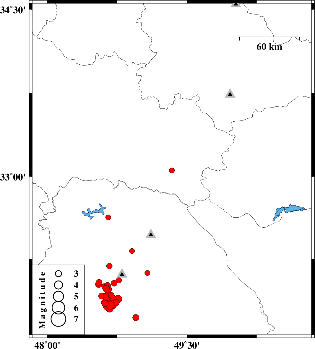 |  | 2018/04/12 | 20:27:51.1 | 00:57:51.1 | 33.055 | 49.338 | 6 | ML:2.6 | Lorestan Province, 46 km South-West of Azna |  |