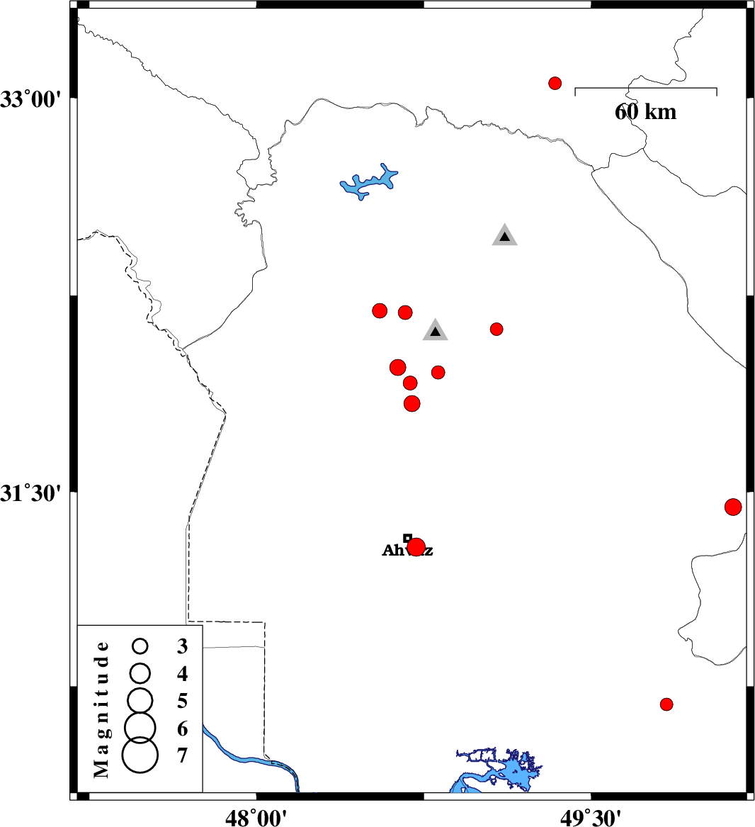 2018/04/11 | 04:56:37.2 | 09:26:37.2 | 32.185 | 48.666 | 14 | ML:2.8 | Khoozestan Province, 24 km North-West of Shushtar | ||