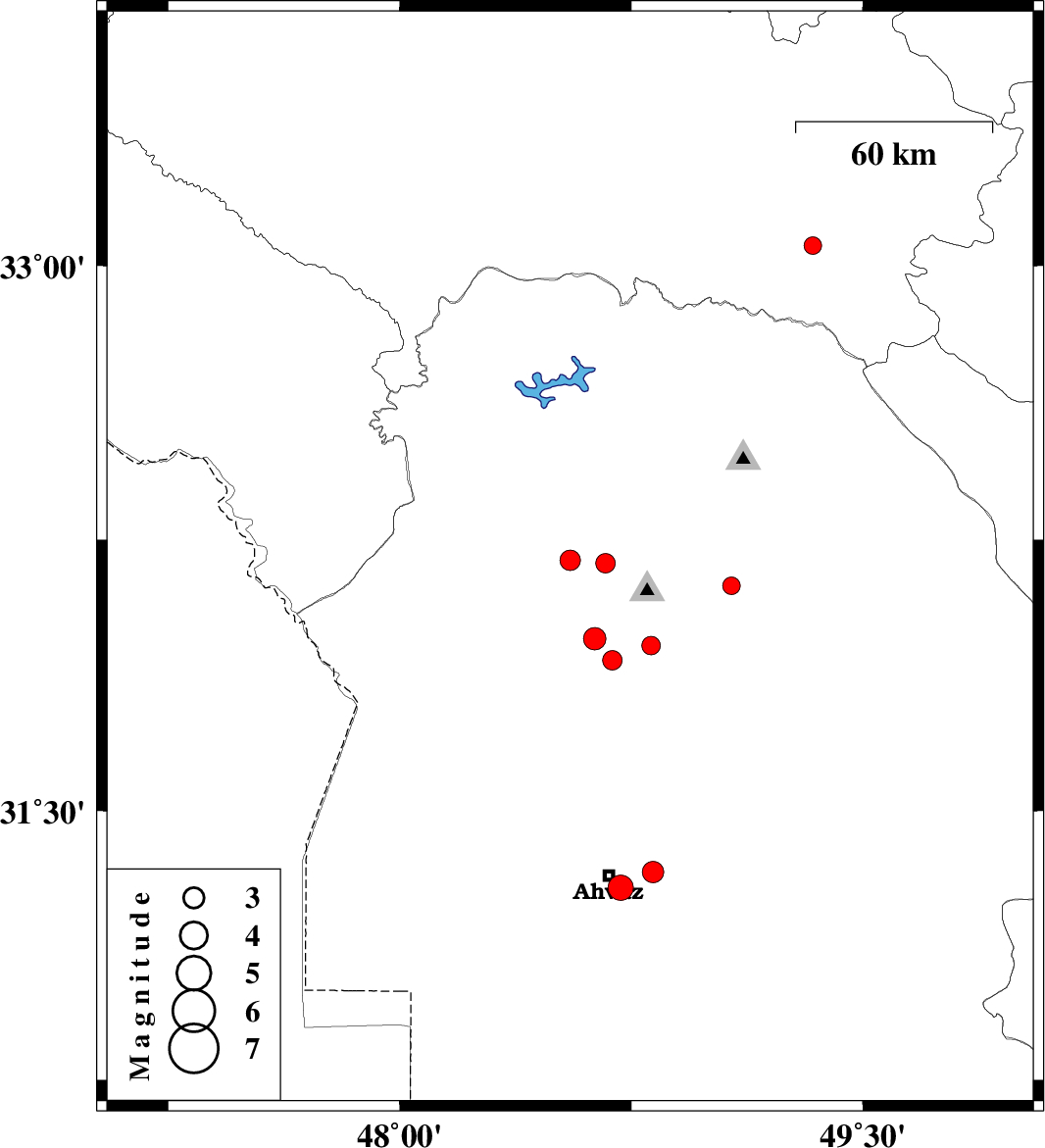 | 2018/04/13 | 03:47:58.4 | 08:17:58.4 | 31.957 | 48.814 | 15 | ML:2.7 | Khoozestan Province, 10 km of Shushtar | ||