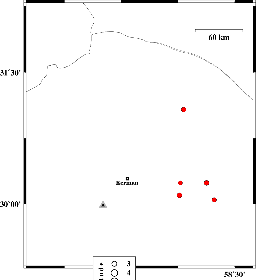 2018/04/14 | 07:57:28.7 | 12:27:28.7 | 30.786 | 56.899 | 17 | ML:2.5 | Kerman Province, 32 km -East of Zarand | ||