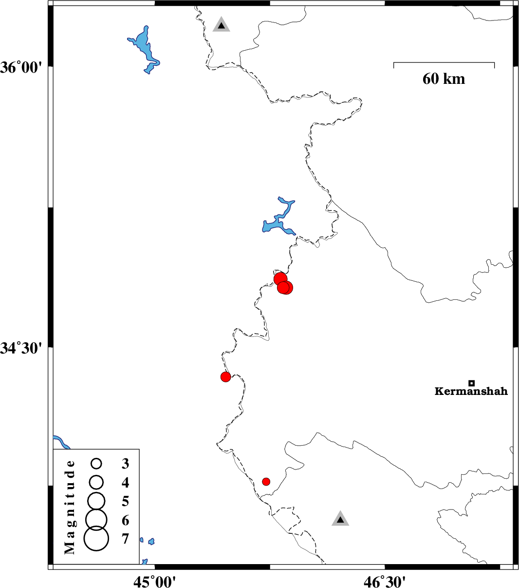 | 2018/04/30 | 22:25:43.1 | 02:55:43.1 | 34.821 | 45.836 | 14 | ML:3.5 | Kermanshah Province, 6 km of Tazehabad | ||