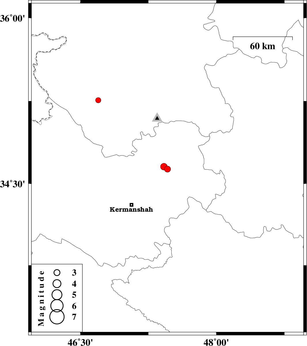 | 2018/05/04 | 11:46:24.9 | 16:16:24.9 | 34.655 | 47.422 | 6 | ML:3.4 | Kermanshah Province, 21 km South-West of Sonqor | ||