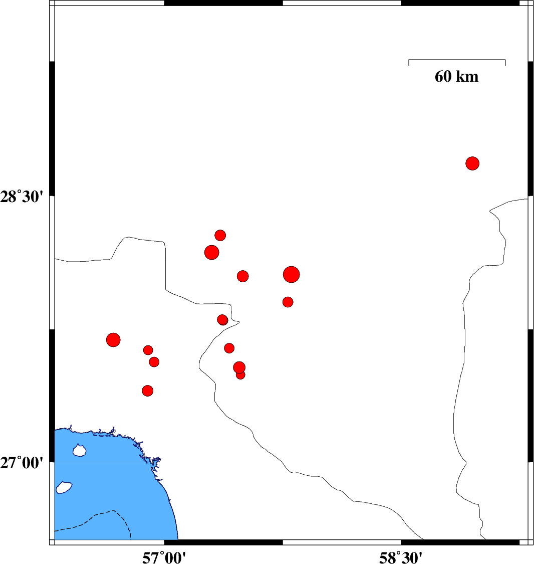 Hormozgan Province, 63 km North-West of Dehbarez | |