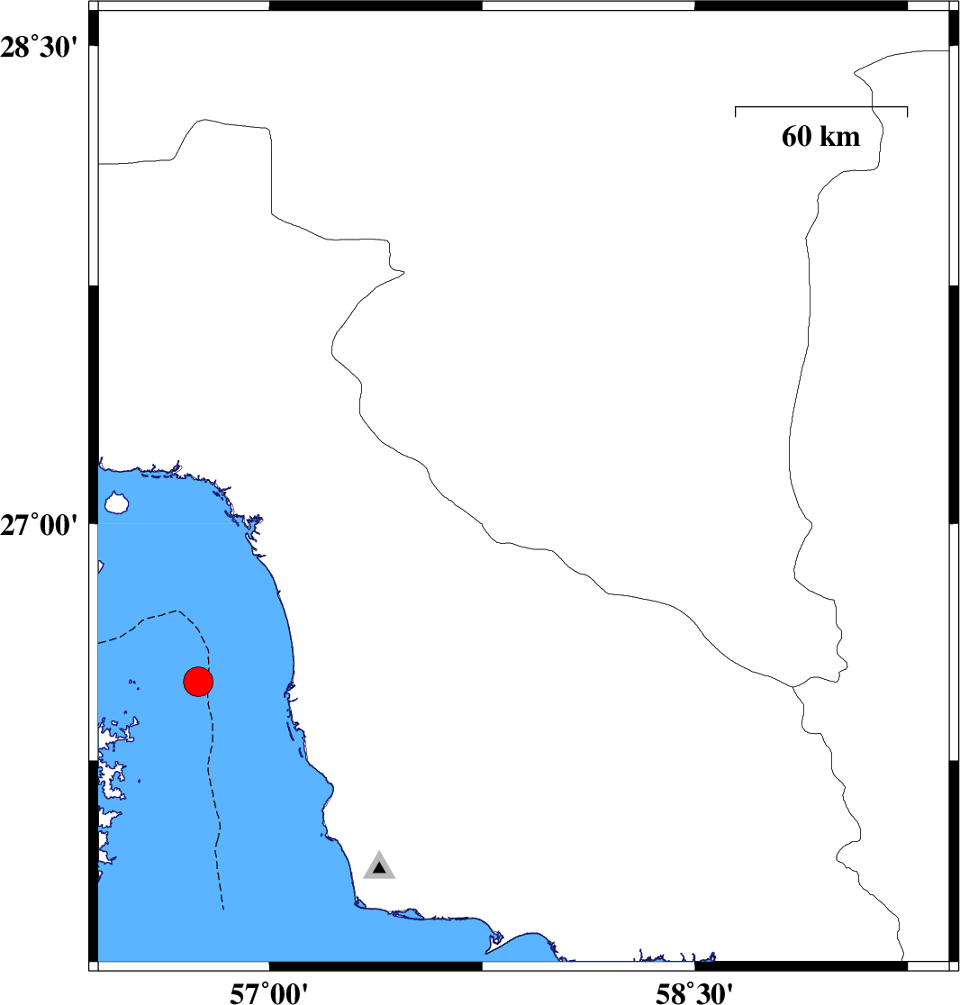 | 2018/05/08 | 18:27:35.2 | 22:57:35.2 | 28.059 | 57.804 | 15 | ML:4.6 | Kerman Province, 16 km North-East of Kahnuj |