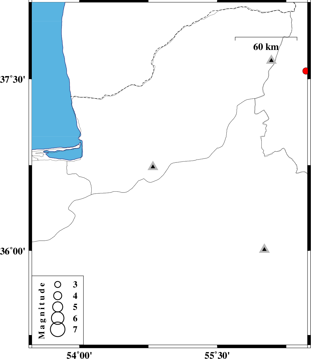 | 2018/04/23 | 22:20:59.3 | 02:50:59.3 | 36.863 | 54.424 | 14 | ML:2.9 | Golestan Province, 3 km of Gorgan | ||