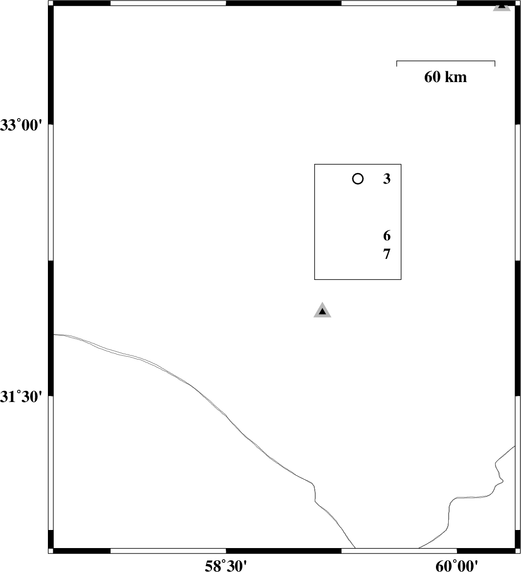 2018/05/17 | 19:46:47.3 | 00:16:47.3 | 32.147 | 58.878 | 14 | ML:4.2 | Khorasan(south) Province, 90 km South-West of Birjand |