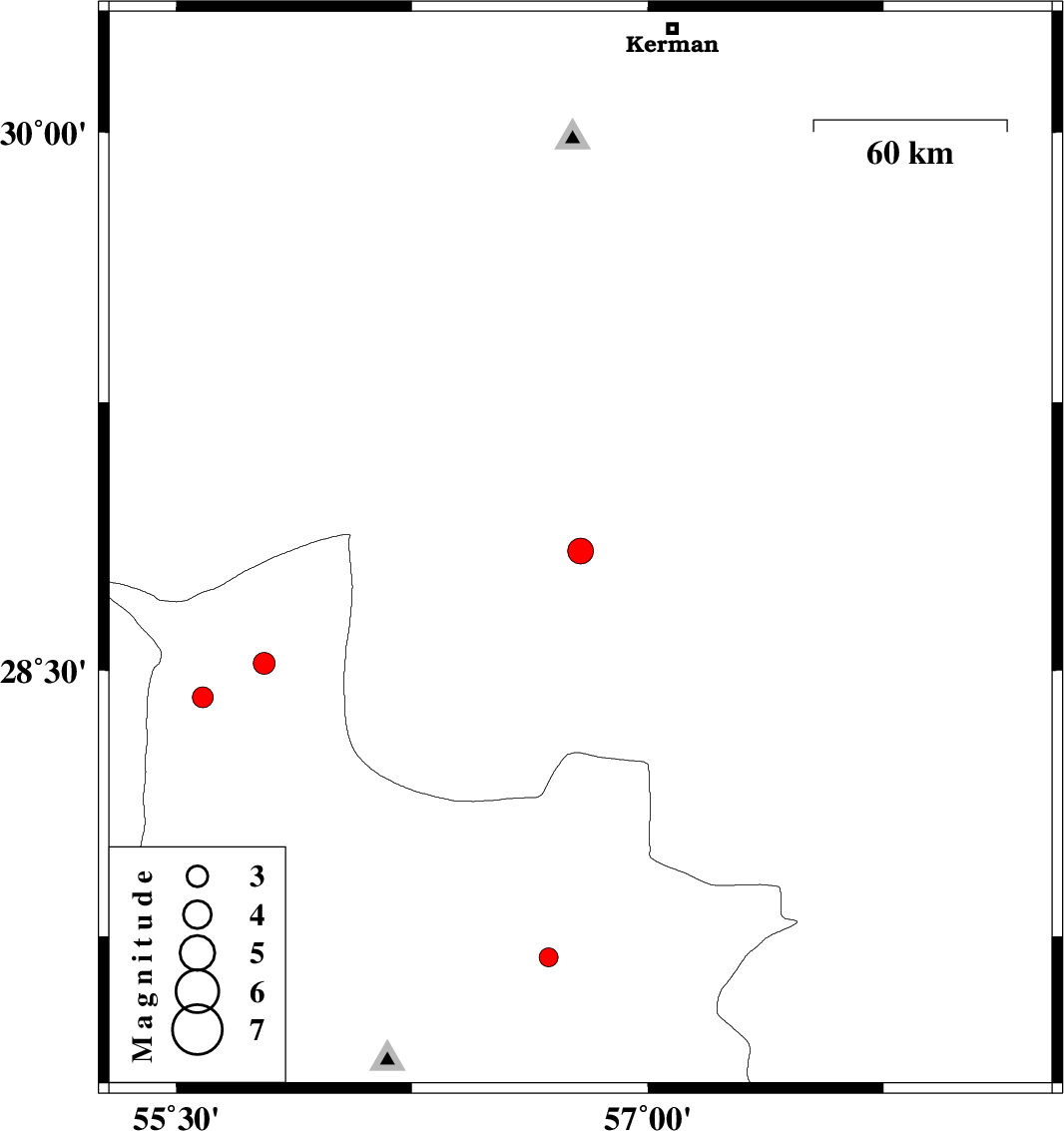 | 2018/05/26 | 00:38:02.0 | 05:08:02.0 | 28.835 | 56.786 | 30 | ML:3.6 | Kerman Province, 48 km South-East of Baft | ||