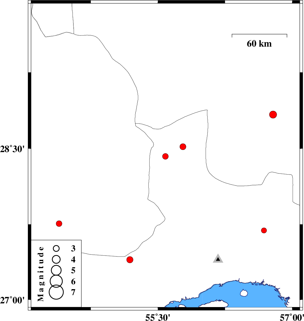 | 2018/05/26 | 12:37:57.9 | 17:07:57.9 | 27.69 | 56.684 | 18 | ML:2.7 | Hormozgan Province, 62 km North-West of Dehbarez | ||