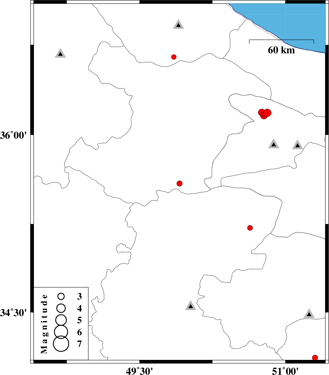 | 2018/05/12 | 23:28:26.9 | 03:58:26.9 | 36.162 | 50.78 | 15 | ML:3.2 | Tehran Province, 25 km North-East of Hashtgerd | ||