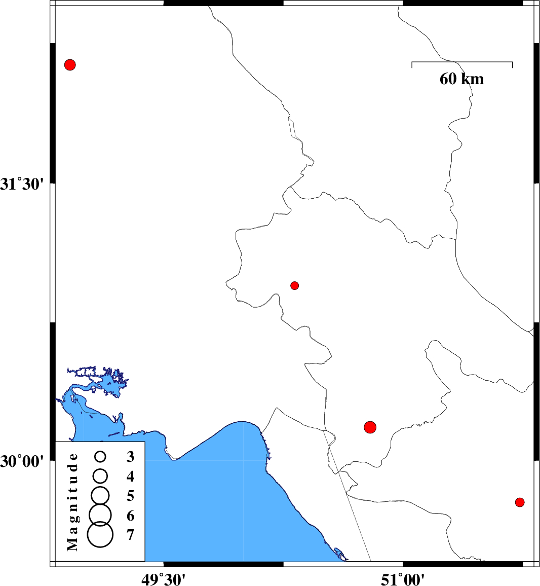 | 2018/05/24 | 06:35:32.2 | 11:05:32.2 | 32.134 | 48.912 | 15 | ML:3.1 | Khoozestan Province, 12 km of Shushtar | ||