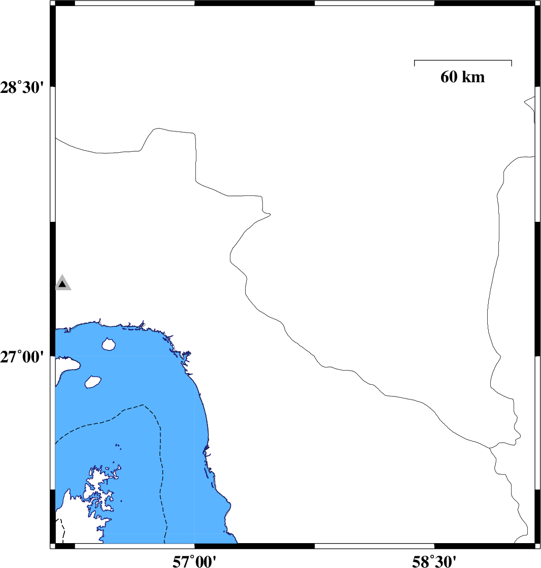 | 2018/05/26 | 12:37:57.9 | 17:07:57.9 | 27.69 | 56.684 | 18 | ML:2.7 | Hormozgan Province, 62 km North-West of Dehbarez | ||