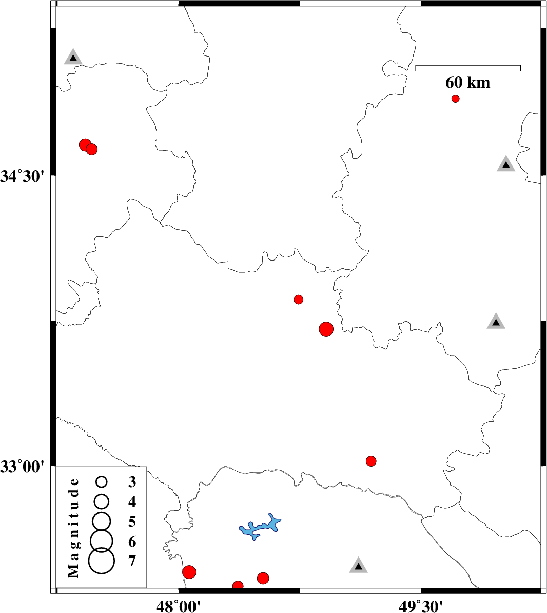 | 2018/05/04 | 11:46:24.9 | 16:16:24.9 | 34.655 | 47.422 | 6 | ML:3.4 | Kermanshah Province, 21 km South-West of Sonqor | ||