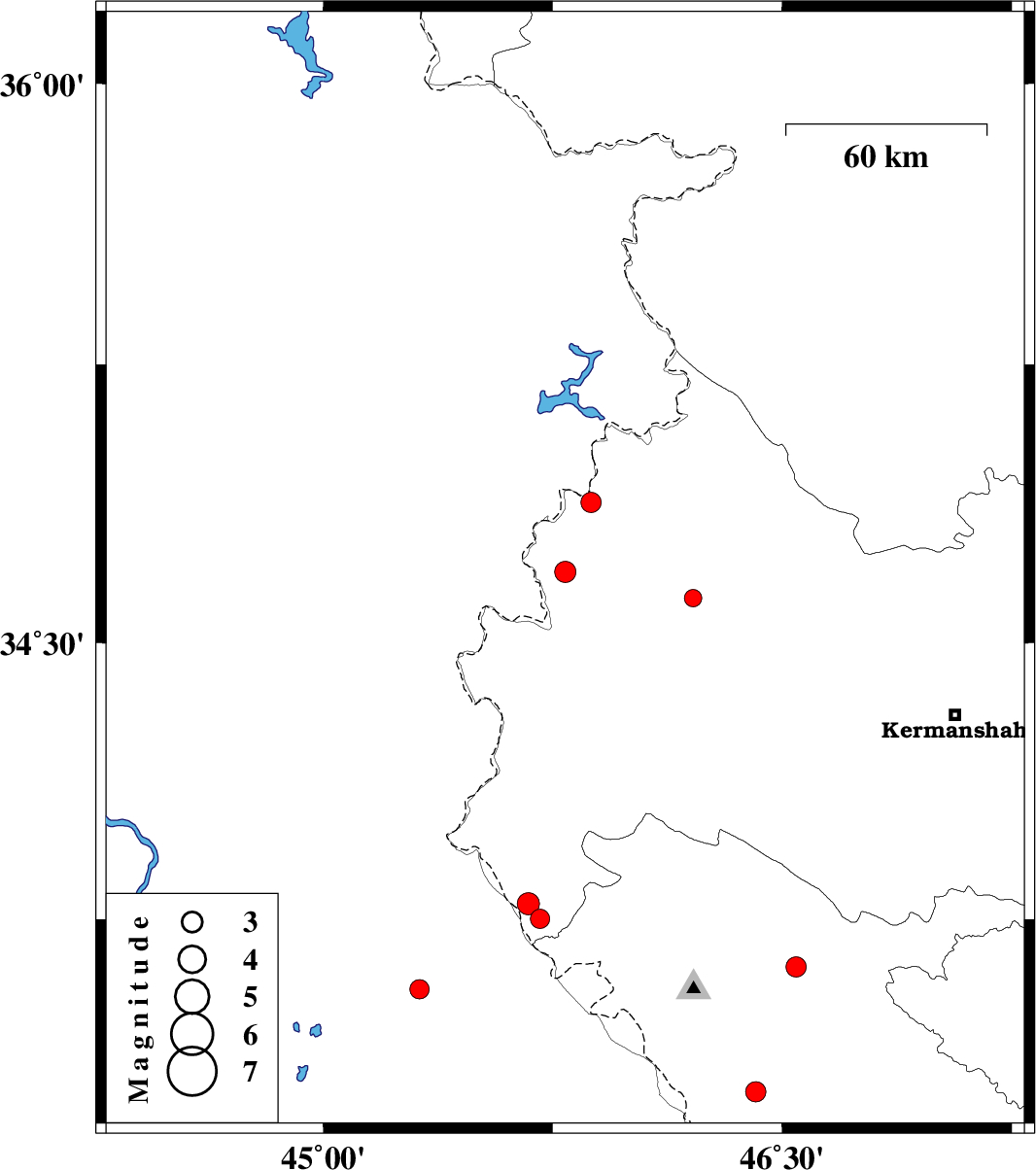 2018/05/30 | 19:23:53.0 | 23:53:53.0 | 34.621 | 46.208 | 15 | ML:2.5 | Kermanshah Province, 32 km South-West of Javanrud | ||