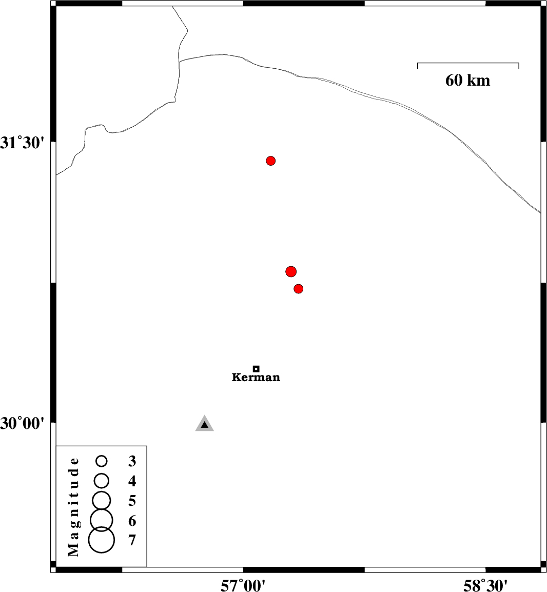 2018/06/02 | 13:56:05.4 | 18:26:05.4 | 30.717 | 57.341 | 14 | ML:2.6 | Kerman Province, 54 km North-East of Kerman | ||