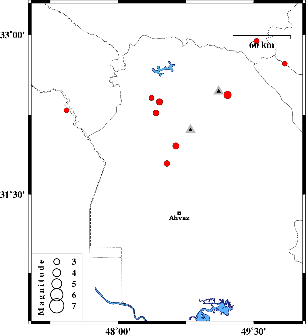 | 2018/06/06 | 15:14:02.9 | 19:44:02.9 | 32.41 | 48.369 | 16 | ML:2.7 | Khoozestan Province, 4 km of Dezful | ||