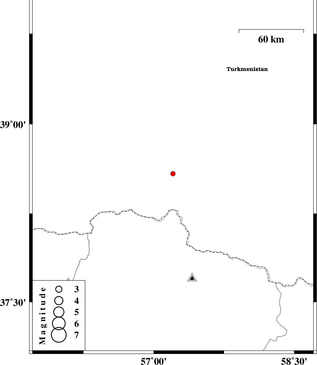 | 2018/05/24 | 22:09:46.3 | 02:39:46.3 | 37.113 | 55.946 | 7 | ML:3.2 | Semnan Province, 43 km North-West of Jajarm |