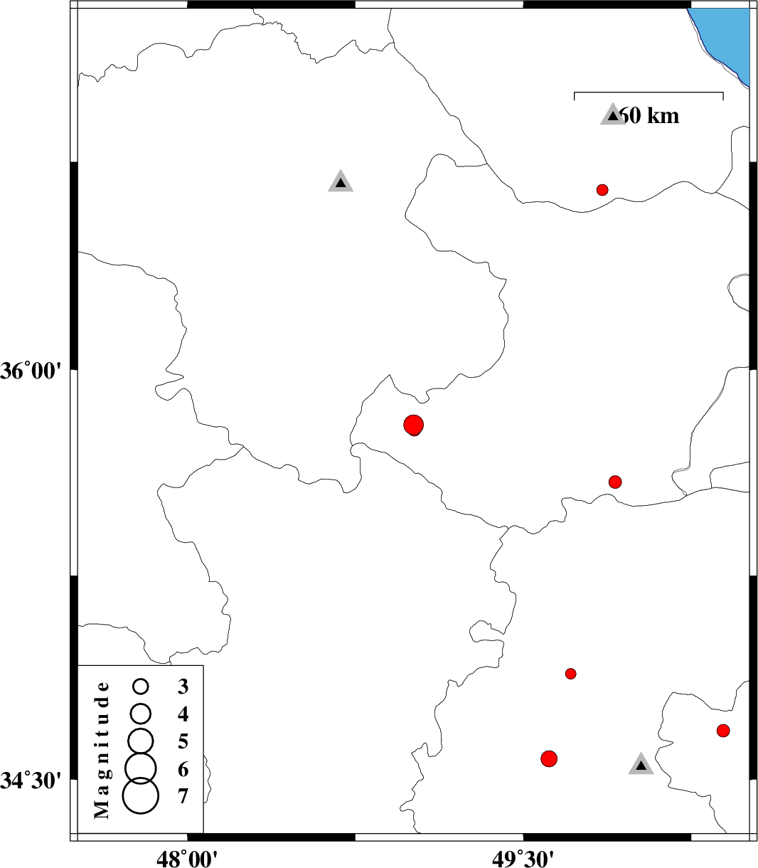 | 2018/05/23 | 05:46:11.3 | 10:16:11.3 | 36.649 | 49.853 | 17 | ML:2.2 | Gilan Province, 56 km South of Siahkal |