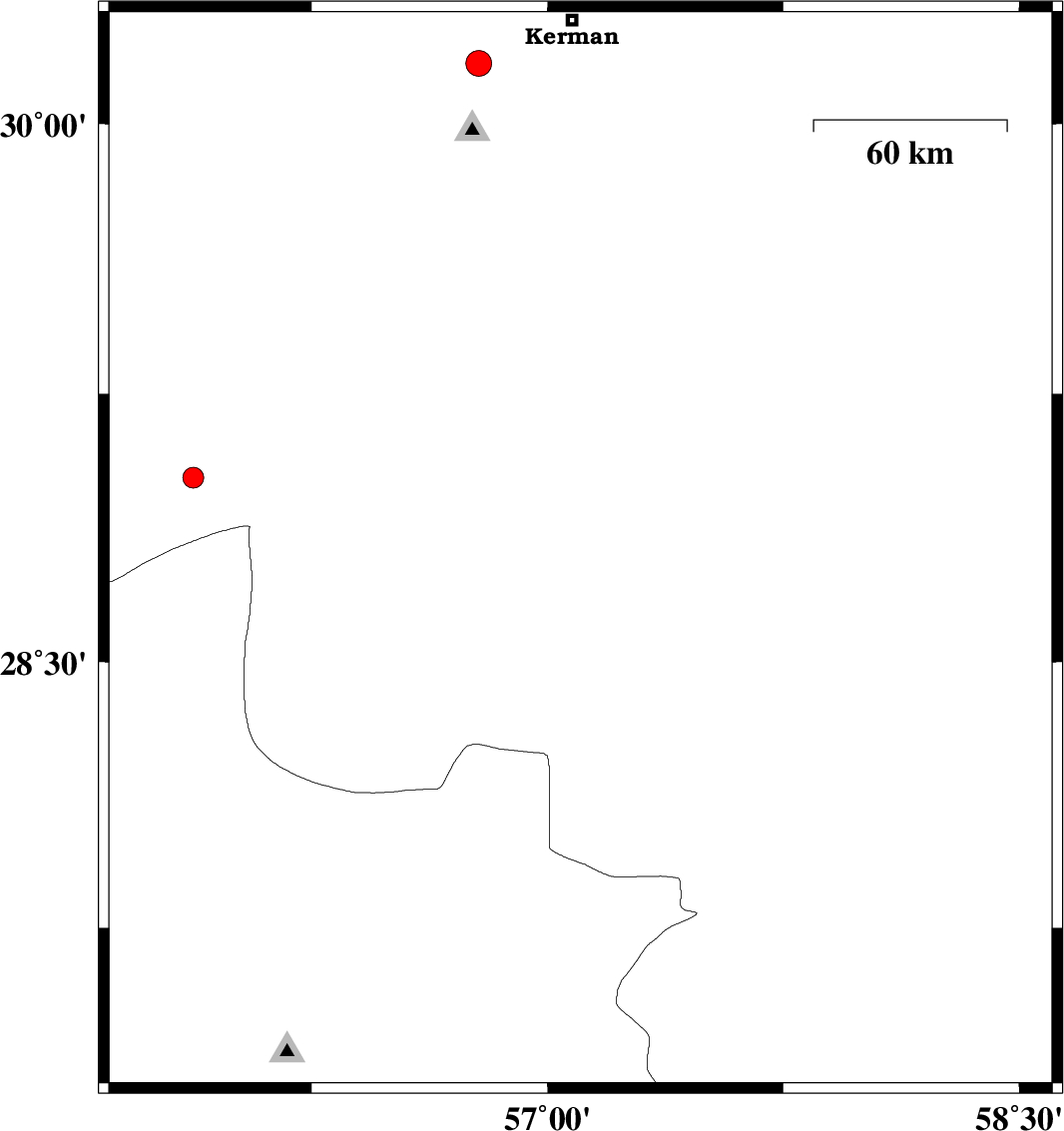 | 2018/06/11 | 03:40:24.0 | 08:10:24.0 | 29.965 | 58.012 | 15 | ML:3.6 | Kerman Province, 101 km North-West of Bam |