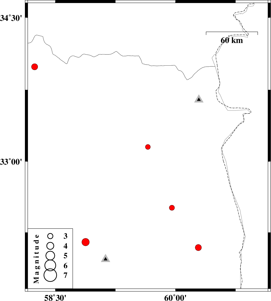 | 2018/05/17 | 19:46:47.3 | 00:16:47.3 | 32.147 | 58.878 | 14 | ML:4.2 | Khorasan(south) Province, 90 km South-West of Birjand |