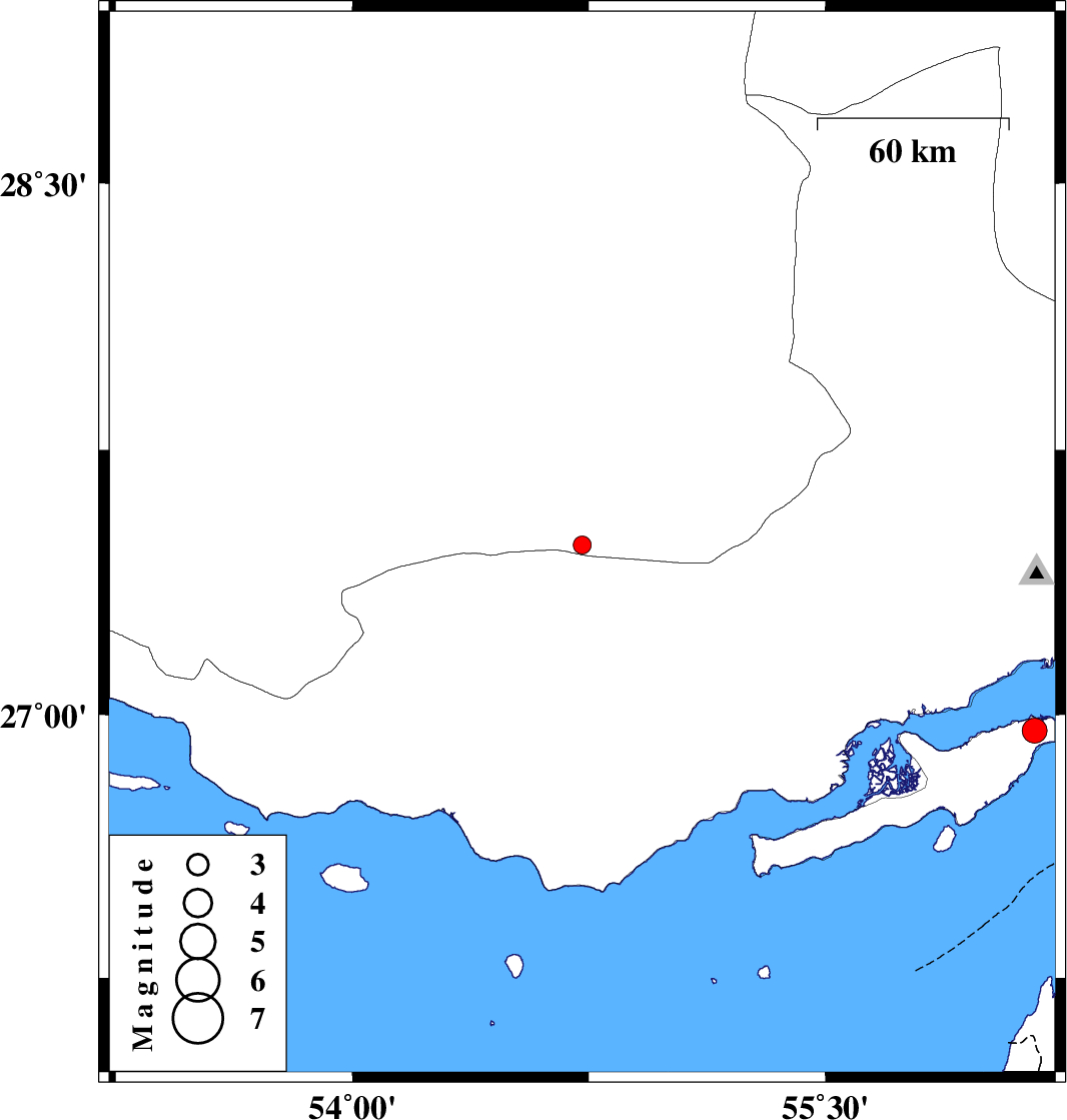 | 2018/06/09 | 10:17:32.0 | 14:47:32.0 | 26.955 | 56.164 | 10 | ML:3.5 | Persian Gulf, 10 km -West of Qeshm |