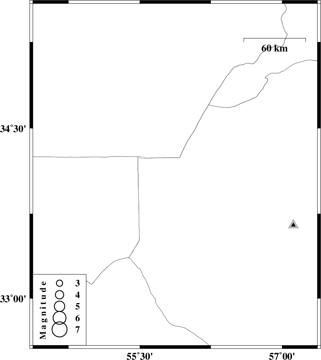 | 2018/06/19 | 05:42:39.6 | 10:12:39.6 | 34.082 | 55.873 | 14 | ML:2.7 | Yazd Province, 111 km North-West of Tabas |