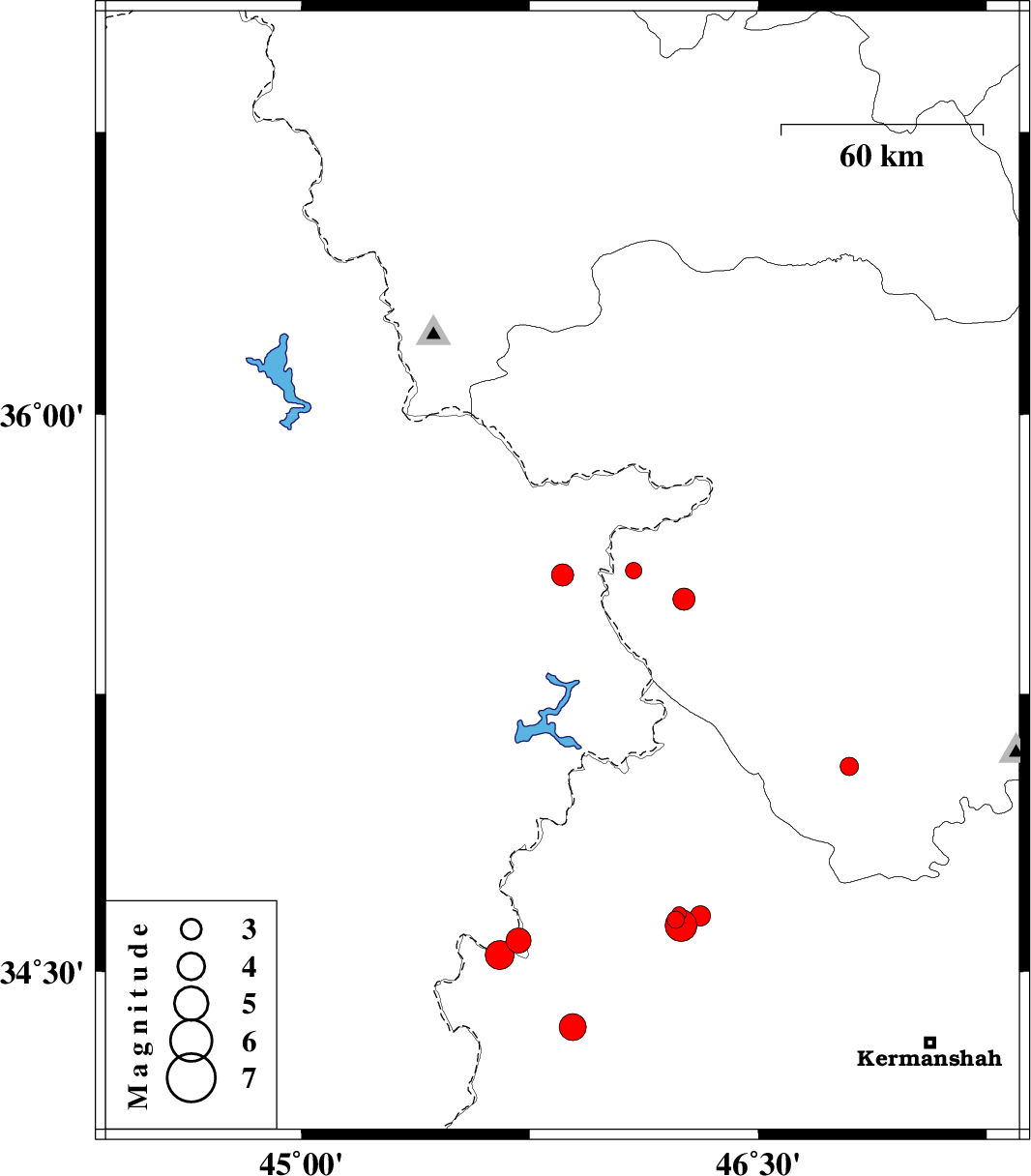2018/06/26 | 22:35:44.9 | 03:05:44.9 | 34.656 | 46.239 | 6 | ML:2.1 | Kermanshah Province, 27 km South-West of Javanrud | ||