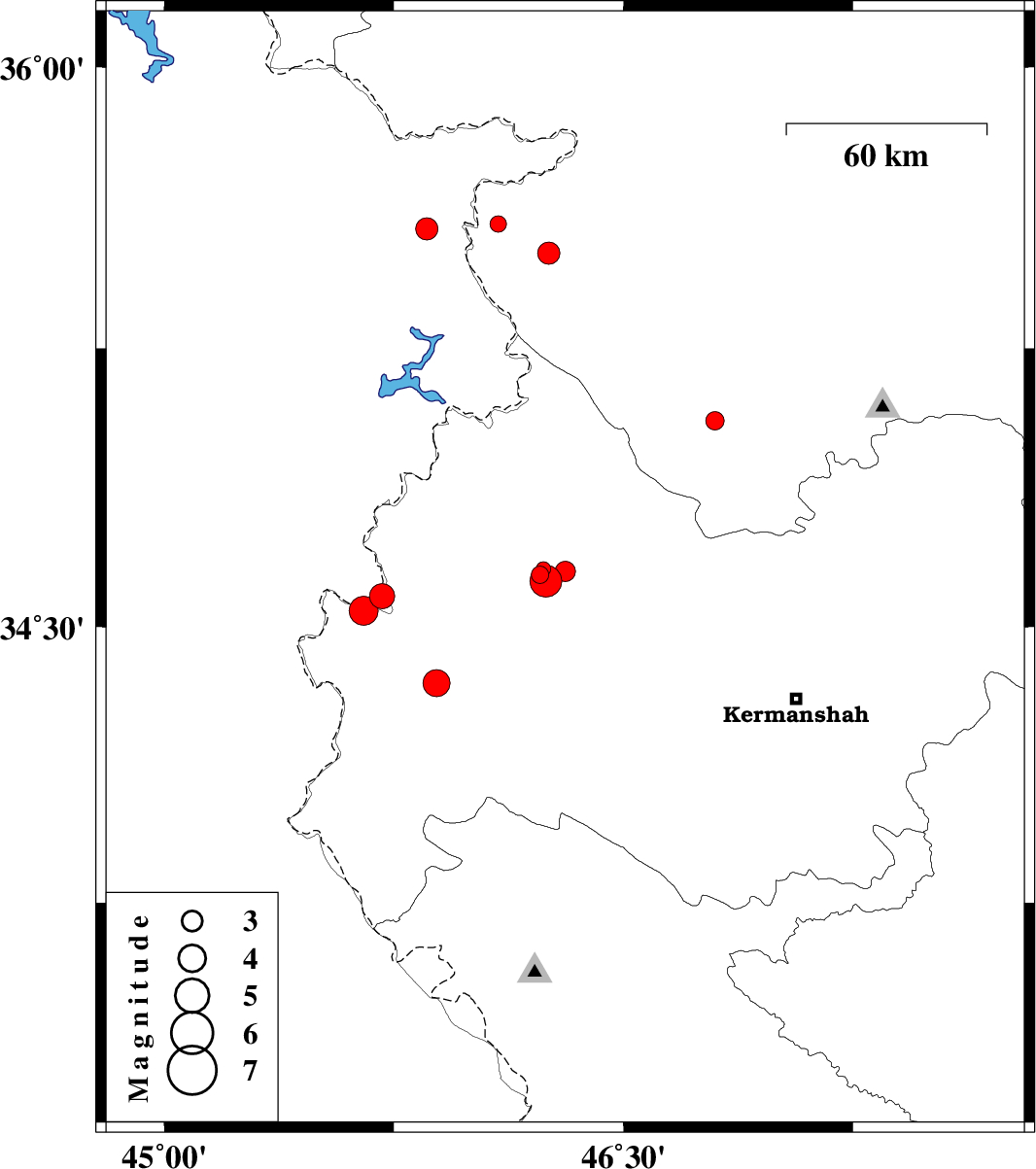 2018/06/26 | 22:35:44.9 | 03:05:44.9 | 34.656 | 46.239 | 6 | ML:2.1 | Kermanshah Province, 27 km South-West of Javanrud | ||