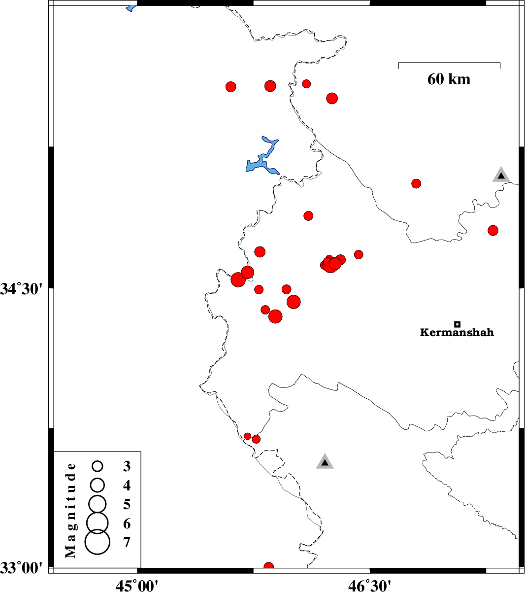 2018/06/06 | 00:07:07.5 | 04:37:07.5 | 34.426 | 46.008 | 15 | ML:3.9 | Kermanshah Province, 12 km -East of Sar-e pol-e zahab | ||