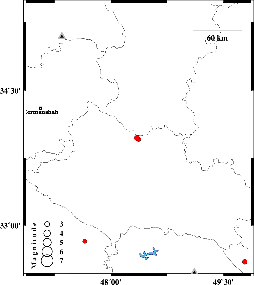 | 2018/07/07 | 03:38:54.2 | 08:08:54.2 | 33.976 | 48.347 | 14 | ML:3.2 | Lorestan Province, 13 km North of Aleshtar | ||