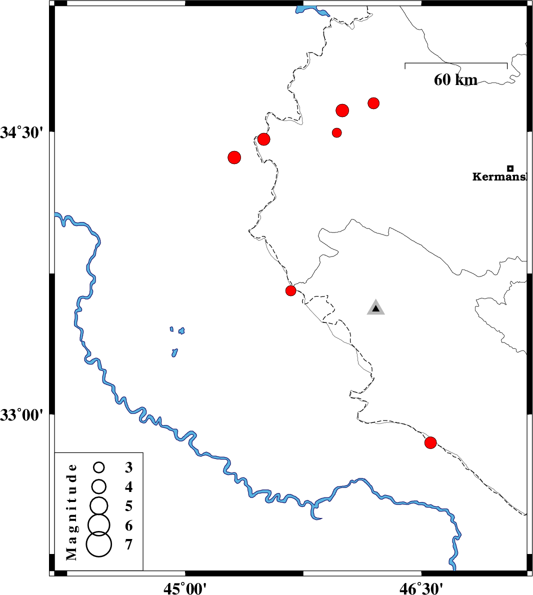 | 2018/06/30 | 06:08:07.6 | 10:38:07.6 | 34.611 | 45.997 | 15 | ML:3.7 | Kermanshah Province, 19 km North-East of Sar-e pol-e zahab | ||