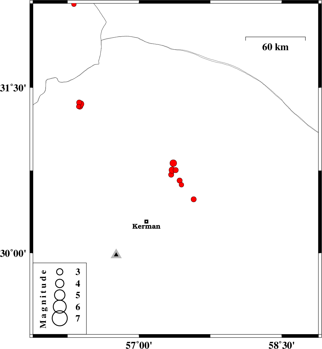 2018/07/07 | 04:46:49.6 | 09:16:49.6 | 30.622 | 57.446 | 14 | ML:2.3 | Kerman Province, 51 km North-East of Kerman | ||