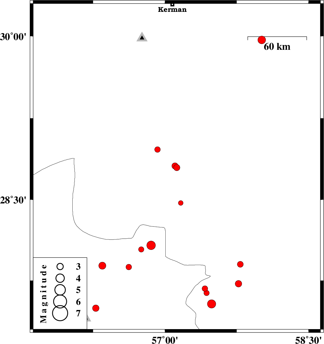 2018/06/11 | 03:40:24.0 | 08:10:24.0 | 29.965 | 58.012 | 15 | ML:3.6 | Kerman Province, 101 km North-West of Bam |