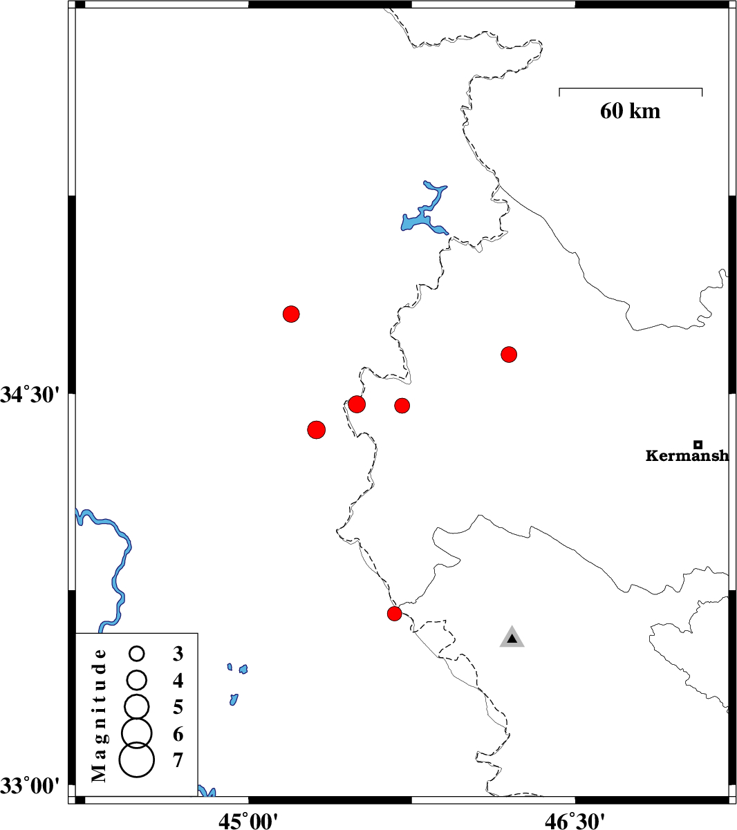 | 2018/07/03 | 21:46:33.7 | 02:16:33.7 | 34.46 | 45.498 | 15 | ML:3.5 | Kermanshah Province, 10 km of Qasr-E-Shirin | ||